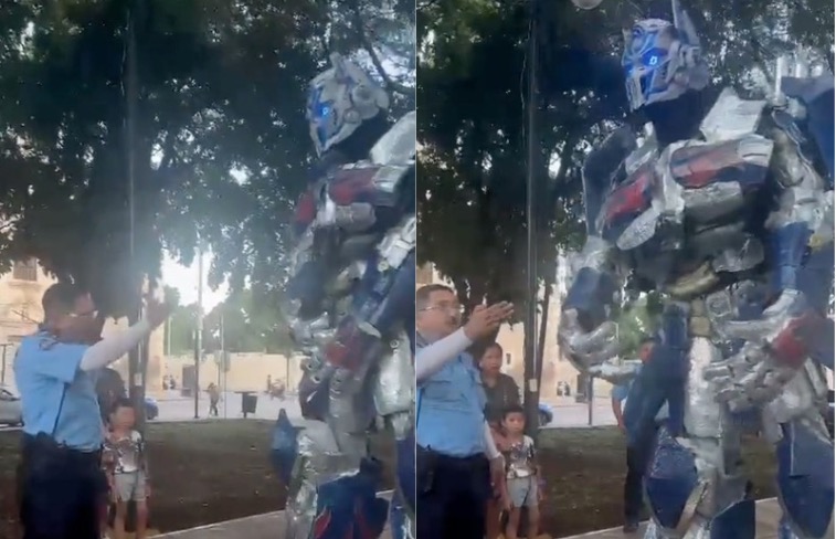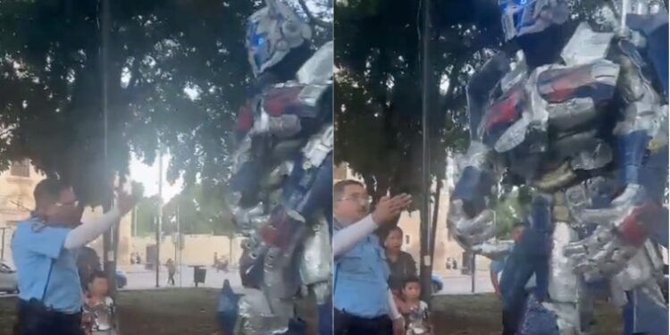 Mérida, Yucatán – A través de redes sociales se volvió viral un video en el que se muestra a un hombre disfrazado de Optimus Prime discutiendo con un policía, el metraje ha desatado un sinfín de reacciones en internet; aquí te contamos qué pasó.