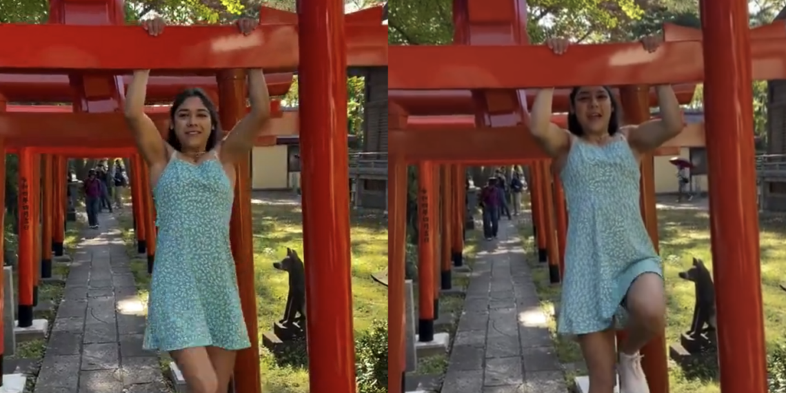 Influencer causó indignación en Japón tras ejercitarse en símbolo sagrado