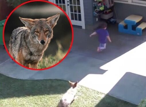 Un coyote persigue a una niña de 4 años por el patio de su casa