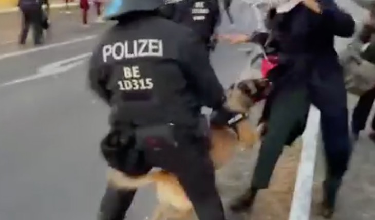 Durante una manifestación de apoyo a Palestina, la policía de Alemania utilizó a su unidad canina para amedrentar a las personas con el fin de terminar un bloqueo que mantenían sobre una avenida principal de circulación vehicular.