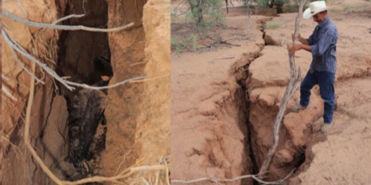 Hermosillo, Sonora.- El origen de la grieta en el ejido Cruz Gálvez se trata de una fractura hidráulica, autoridades de Protección Civil y expertos en Geología aseguraron que no representa un riesgo mayor para la población.