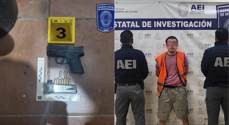 Derivado de investigaciones por el delito de homicidio y extorsión, fue detenido un sujeto que, al ser abordado, atacó con un arma de fuego a elementos de la Agencia Estatal de Investigación, quienes lograron controlar la situación y ponerlo a disposición del Ministerio Público.