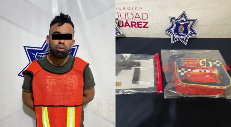 Motivo por el cual fue alcanzado en el cruce de las calles Justo Sierra y 20 de Noviembre, en la citada colonia, donde al realizarle una inspección preventiva se le localizó en una mochila que llevaba un arma de fuego calibre .40, con un cargador abastecido con siete cartuchos útiles, siendo puesto bajo detención.