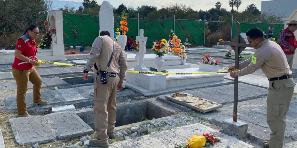 Saltillo — Este domingo en Saltillo, Miriam Janeth, de 32 años, resultó lesionada tras caer en el fondo de una tumba en un panteón de la colonia Praderas.