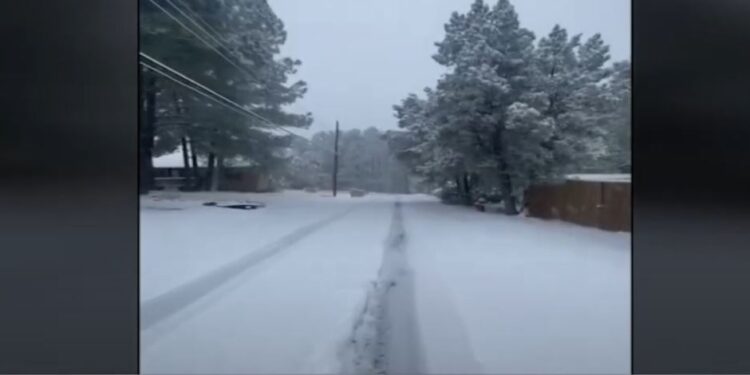 Se registró la primera nevada de la temporada, por lo que las montañas se pintaron de blanco en Ruidoso, Nuevo México.