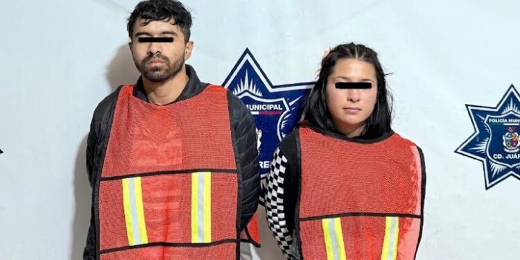 Ciudad Juárez.- Agentes de la Secretaría de Seguridad Pública Municipal capturaron a Evelin Elena S. V. y Arturo P. G., por su presunta responsabilidad en la comisión de delitos contra la salud, resultando ambos con un largo historial delictivo.