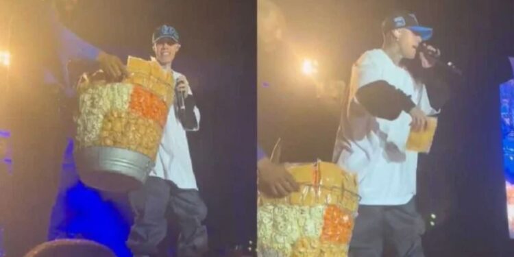 En #Yucatán, el rapero Santa Fe Klan interrumpió su concierto para comprarle toda la mercancía a un vededor de papas y chicharrones.