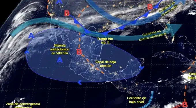 En su comunicado matutino, el organismo oficial del clima en México detalla que, el frente frío 11 recorrerá paulatinamente el norte y noreste mexicano, generando lluvia, vientos y chubascos dispersos en dichas regiones, así como en el oriente del país.