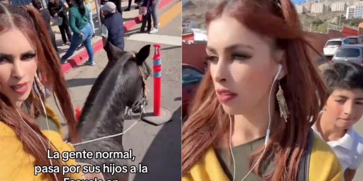 El video, publicado por la influencer conocida como “Blanca La Potra”, muestra cómo ella recoge a su hijo de la escuela montando un caballo. En lugar de utilizar un automóvil, como muchas personas, Blanca optó por este medio de transporte tradicional que ha sido parte de su vida desde que era pequeña. En el video, ella menciona que su papá también la recogía a caballo cuando era niña, por lo que decidió hacer lo mismo con su hijo, creando recuerdos especiales juntos.