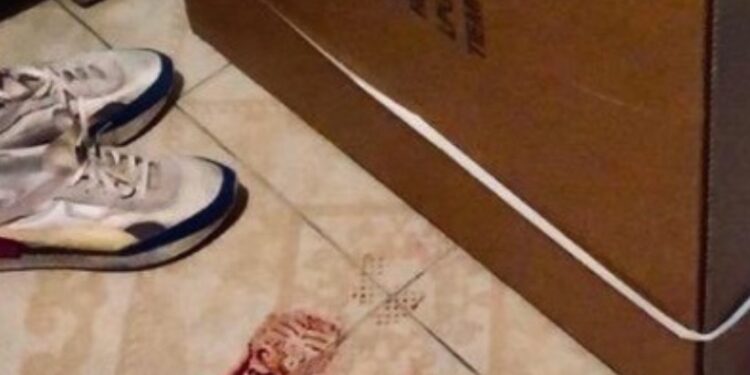 Jiménez compartió también imágenes del lugar del incidente. En estas se observa el arma punzocortante, descrita como un cuchillo de combate de gran tamaño y con un filo considerable, junto a la caja de la bicicleta y marcas de sangre en el suelo.