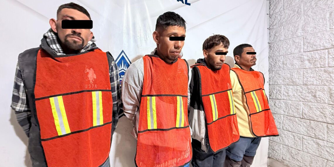 Elementos de la Secretaría de Seguridad Pública Municipal arrestaron a Brayan S. P., Jesús Fernando P. L., Carlos Gerardo R. S. y Edwin Gabriel C. P., por su presunta responsabilidad en la comisión del delito de robo de vehículo y delitos contra la salud.