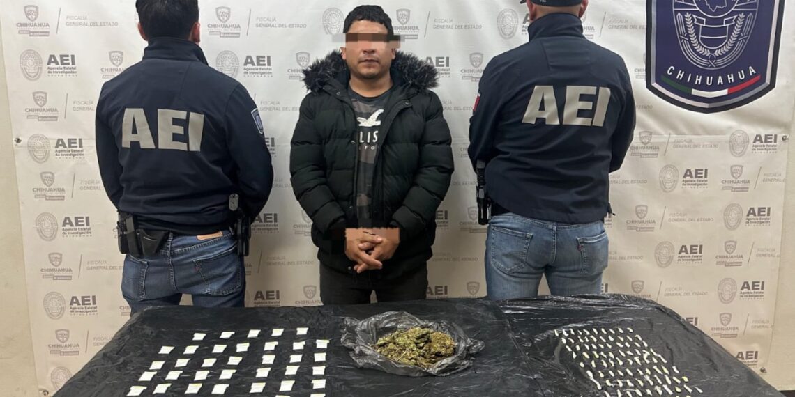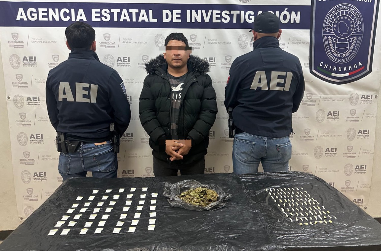 Elementos de la Agencia Estatal de Investigación de la Fiscalía de Distrito Zona Norte, detuvieron en flagrancia a José Alberto L.C., por posesión de droga, en la colonia Fronteriza, en Ciudad Juárez.