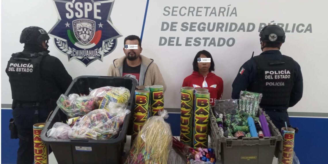 La situación aconteció el pasado 27 de diciembre en la colonia Centro, cuando los elementos de la SSPE detectaron a la pareja sobre la calle Guadalupe Victoria mientras transportaban diversos explosivos y juegos pirotécnicos, lo cual motivó la intervención.
