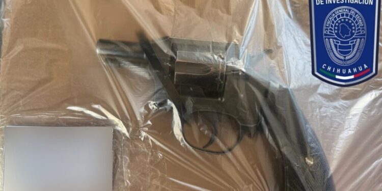 En la inspección al inmueble, localizaron una pistola tipo revolver, marca Miroki, calibre 38 especial, una bolsa de plástico con 13.6 gramos de marihuana y un envoltorio que contenía 0.34 gramos de metanfetamina.