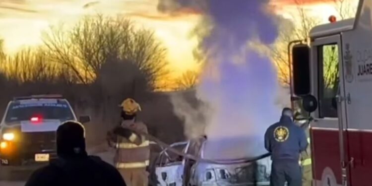 Ciudad Juárez.- Esta mañana se localiza un vehículo en llamas en la colonia Riberas del Bravo.