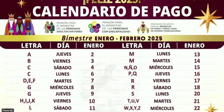 La Secretaria de Bienestar, Ariadna Montiel Reyes, anunció en la primera conferencia de prensa del año, encabezada por la Presidenta Claudia Sheinbaum Pardo en el Palacio Nacional, que del 2 al 22 de enero de 2025 se realizará la dispersión de recursos correspondiente al bimestre enero-febrero. Estos pagos están dirigidos a las personas adultas mayores, personas con discapacidad, y madres trabajadoras. La inversión social asciende a 544 mil 600 millones de pesos, beneficiando a 14.5 millones de derechohabientes.