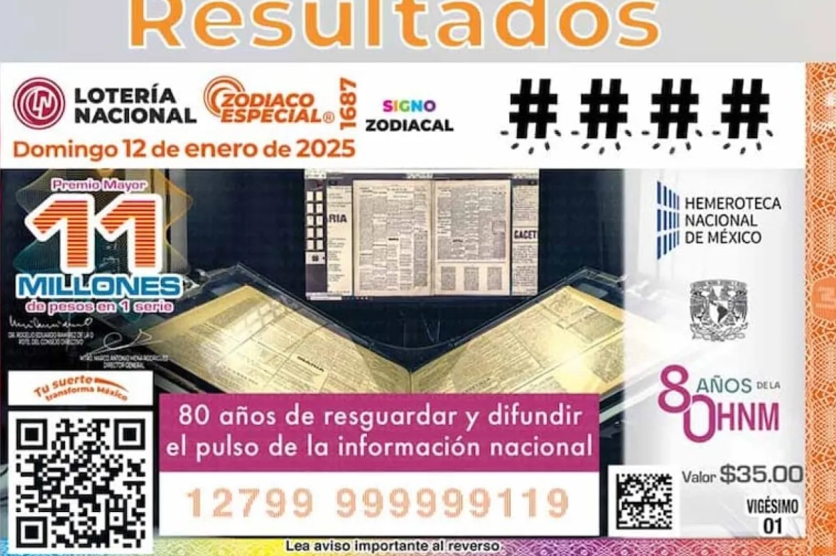 El pasado 12 de enero de 2025, el premio mayor del Sorteo Zodiaco Especial número 1687 de la Lotería Nacional, con un monto de 11 millones de pesos, correspondió al número 3728 del signo Tauro.