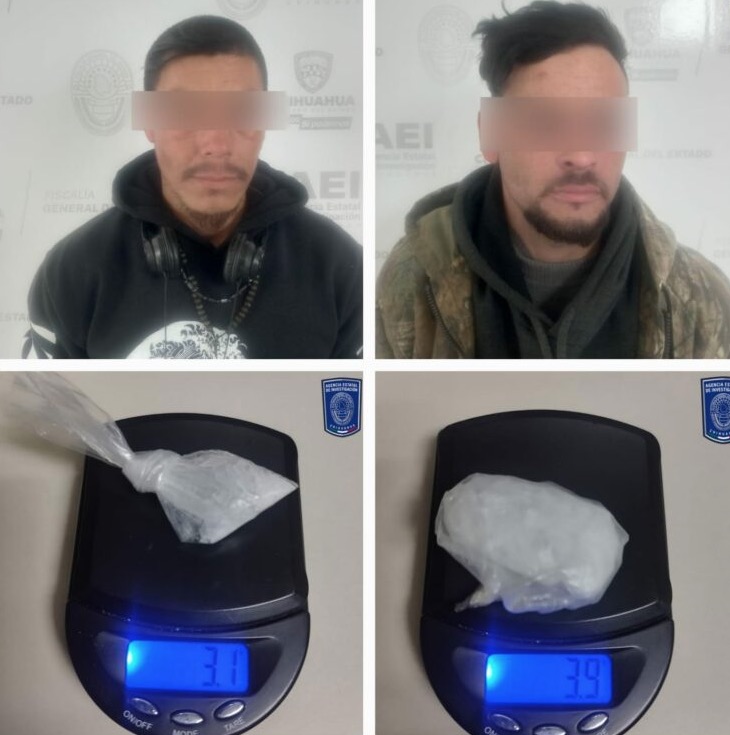 Elementos de la Agencia Estatal de Investigación, adscritos a la Fiscalía de Distrito Zona Occidente, detuvieron en flagrancia a dos hombres en posesión de metanfetamina, droga que también es conocida como cristal, en calles de colonia Lázaro Cárdenas.