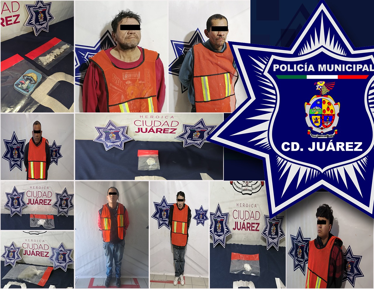 Ciudad Juárez-. Elementos de la Secretaría de Seguridad Pública Municipal arrestaron a seis personas, por su presunta responsabilidad en la comisión de delitos contra la salud en su modalidad de narcomenudeo.