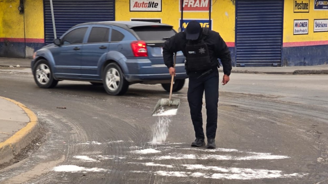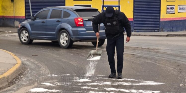 Ciudad Juárez.-Ante la posibilidad de que por las bajas temperaturas se pudieran dar casos de cristalización de las calles, agentes de la Coordinación General de Seguridad Vial se preparan para esparcir sal y arena sobre las vialidades en las que se registre ese problema, con el fin de evitar cualquier tipo de incidentes.