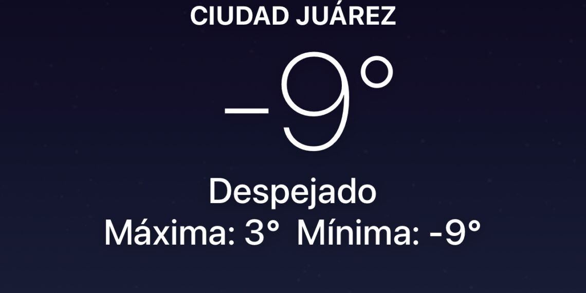 Este martes, Ciudad Juárez amaneció con una temperatura de -9°C, registrando una de las mañanas más frías de la temporada invernal. La sensación térmica ha sido aún más baja debido a los fuertes vientos que acompañan la onda gélida que afecta la región fronteriza.
