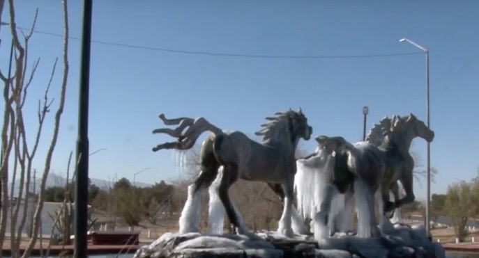 El hielo que cubre el monumento refleja la intensidad de las bajas temperaturas que han marcado esta temporada, dejando huella tanto en la ciudad como en sus habitantes, quienes no dudaron en inmortalizar este fenómeno en un lugar tan representativo de Juárez.