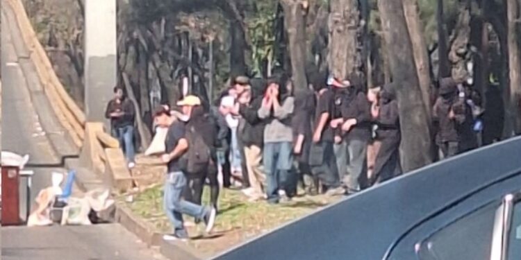 Decenas de automovilistas se han visto atorados en la vialidad, ante la presencia de los jóvenes encapuchados, por lo que varios de ellos han intentado realizar maniobras para regresar en el sentido contrario de la vialidad y evitar el bloqueo.