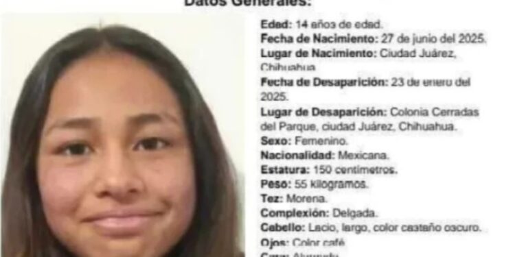 Ciudad Juárez, Chihuahua.– Camila Fernanda Ramón Rodríguez, una adolescente de tan solo 14 años, ha sido reportada como desaparecida por sus familiares, motivo por el cual la Fiscalía General del Estado (FGE) solicita el apoyo de la ciudadanía para localizarla.