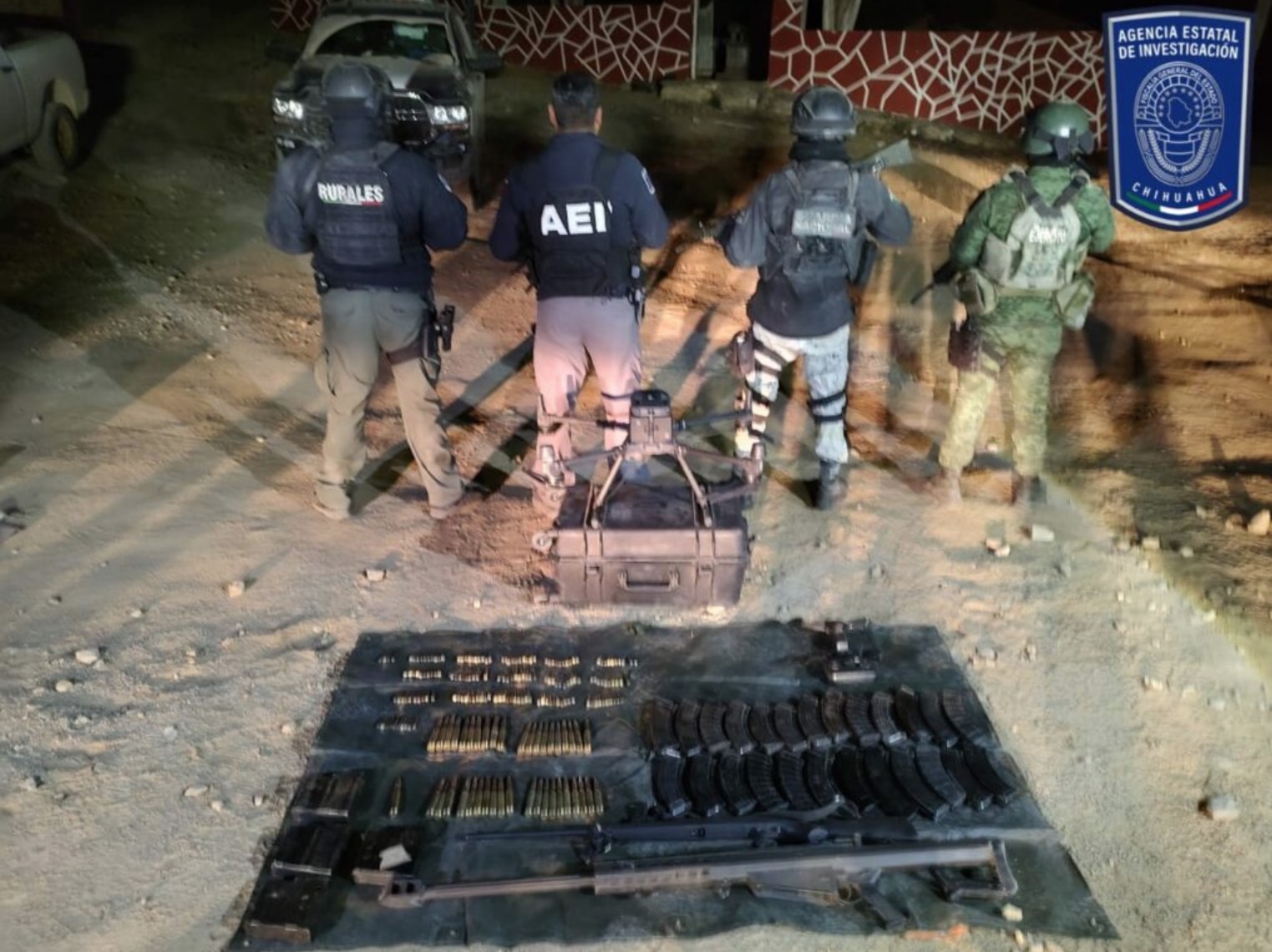 Durante operativos conjuntos realizados para brindar seguridad a la población de municipios de la Sierra Tarahumara y disuadir la comisión de delitos, en el municipio de Uruachi las autoridades aseguraron mariguana, artefactos explosivos, dos fusiles, cargadores y cientos de cartuchos de diversos calibres, así como dos drones.