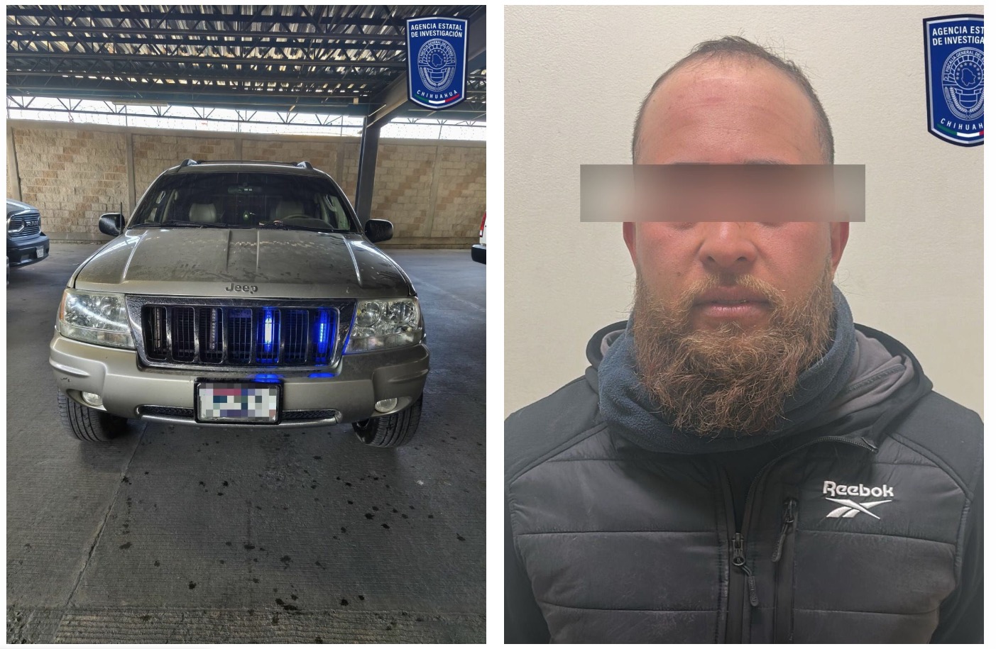La detención del hombre de 28 años de edad, se registró ayer viernes en el cruce de las calles Cuicuilco y Asbesto de la colonia Morelos, cuando conducía un vehículo de la marca Jeep Grand Cherokee, modelo 2004 en color arena con matrículas de circulación del estado de chihuahua, con estrobos tipo policiacos encendidos.