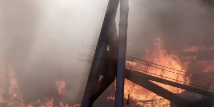 Ciudad Juárez, Chih.- Un incendio de grandes proporciones consumió la madrugada de este lunes seis autobuses y una máquina conocida como “mango de chango” en el taller de la empresa TRJ, ubicado en la Calle Ejido San Agustín, en el Ejido Zaragoza.