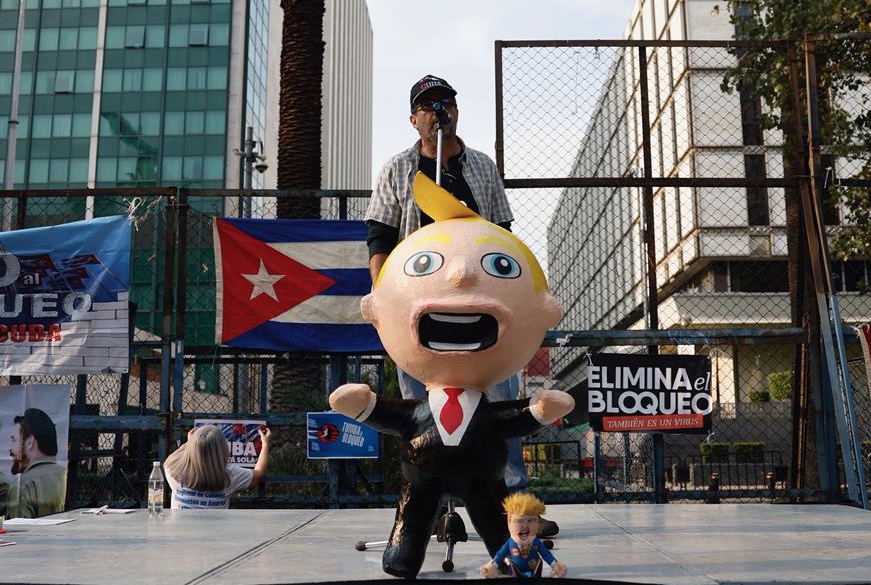 MEX860. CIUDAD DE MÉXICO (MÉXICO), 25/01/2025.- Un hombre habla durante una manifestación este sábado, frente a la Embajada de Estados Unidos en Ciudad de México (México). Decenas de activistas mexicanos se manifestaron afuera de las instalaciones de la Embajada de Estados Unidos para protestar por el regreso de Cuba en la lista de Estados promotores del terrorismo tras la llegada del presidente Donald Trump. EFE/ Sáshenka Gutiérrez