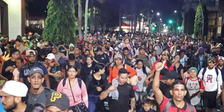 Tapachula, México.- Miles de migrantes salieron este domingo en una nueva caravana desde la frontera sur de México, para intentar llegar a la capital del país, y posteriormente buscar cruzar a los Estados Unidos, a pesar de que el presidente Donald Trump ha endurecido sus políticas migratorias y las deportaciones de personas.