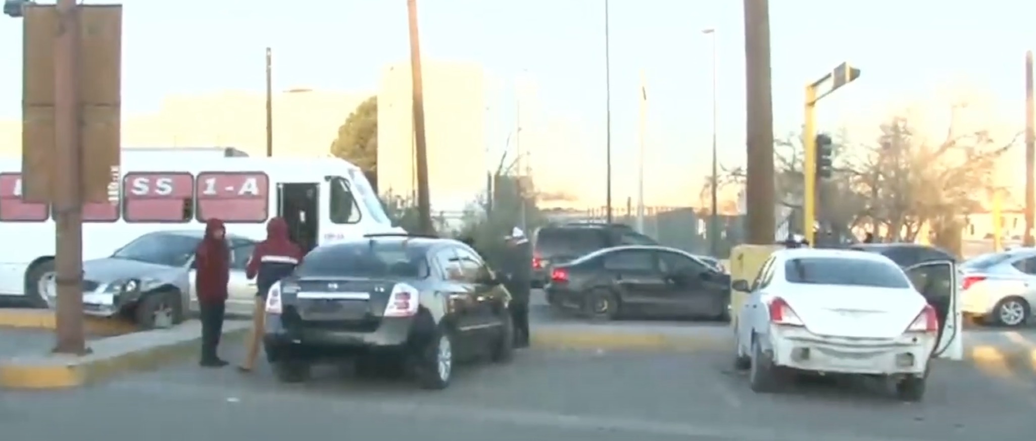 Ciudad Juárez, Chih.— Esta mañana, un accidente vial se registró en la avenida Valle del Cedro, donde un automóvil Nissan color blanco terminó sobre el camellón central de la vialidad.