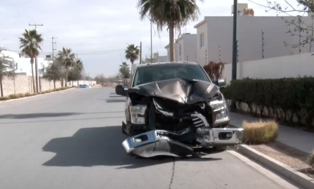 Ciudad Juárez, Chih.- Conductor de una camioneta quedó impactado contra una barda, dejando daños considerables.