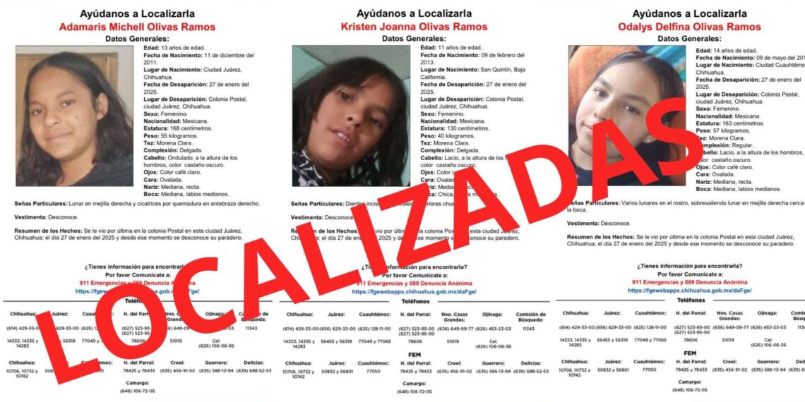 Localizan a las tres menores reportadas como desaparecidas en Ciudad Juárez