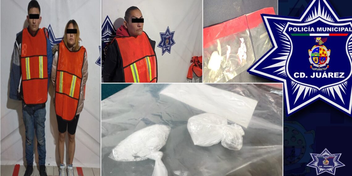 Diana Areli S. C. de 21 años y Miguel Ángel M. V. de 25 años, fueron detenidos en el cruce del bulevar Oscar Flores Sánchez y avenida Adolfo López Mateos, en la colonia Melchor Ocampo, luego de que fueron sorprendidos en posesión de un envoltorio de plástico con cristal, con un peso aproximado a los 20 gramos.