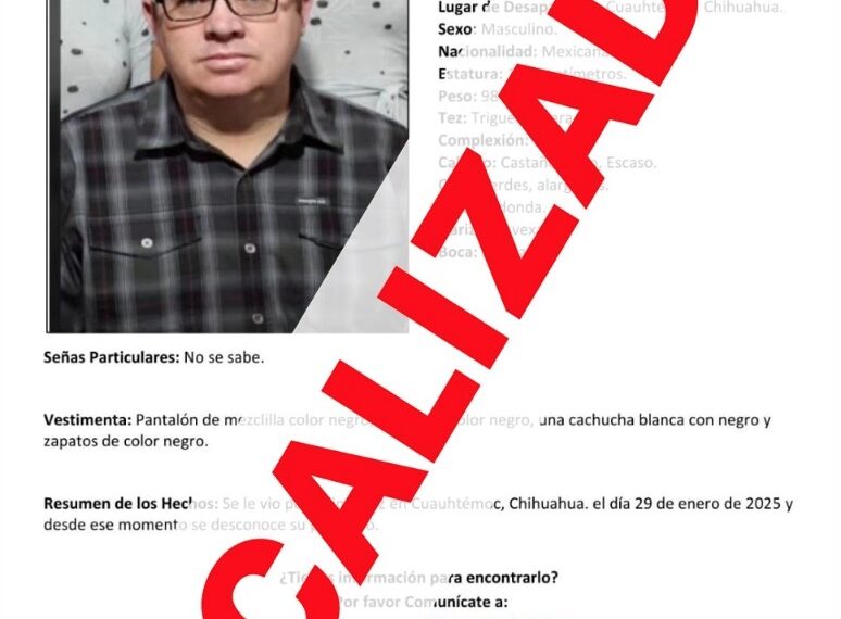 Siendo las 09:30 horas del día de hoy, se localizó a dicha persona, de 40 años de edad y quien contaba con reporte de ausencia y/o extravío, interpuesto el día 29 de enero del 2025 por su hermano Isaak U. D.