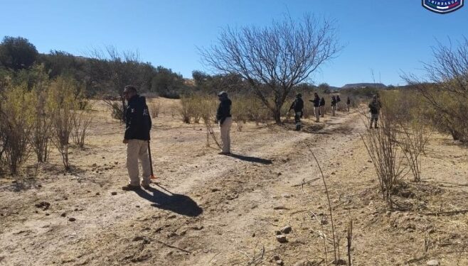 Desde temprana hora elementos de la Agencia Estatal de Investigación, en coordinación con e1 Ministerio Publico, peritos en criminalística de campo y elementos de la Guardia Nacional, recorrieron de manera pedestre tramos de la carretera que conduce de Nonoava a Guachochi y caminos vecinales, cubriendo una superficie de 7 mil metros cuadrados.