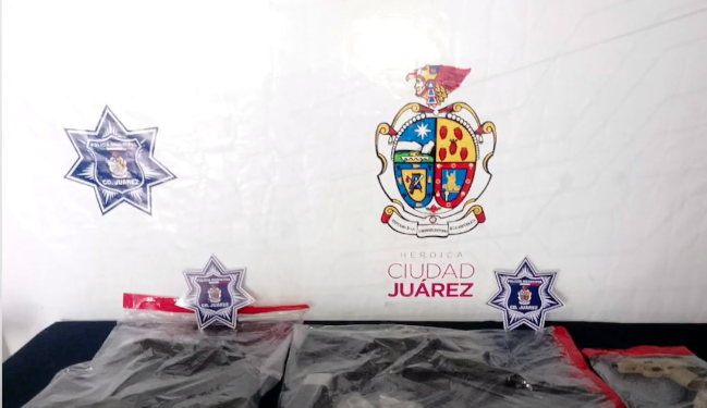 Ciudad Juárez, Chih.- Durante labores de prevención y vigilancia en la colonia Torres del Pri, agentes de la Secretaría de Seguridad Pública Municipal aseguraron un arma larga, un arma corta (ambas abastecidas con cartuchos útiles) y un chaleco antibalas, encontrados en el interior de un vehículo abandonado.