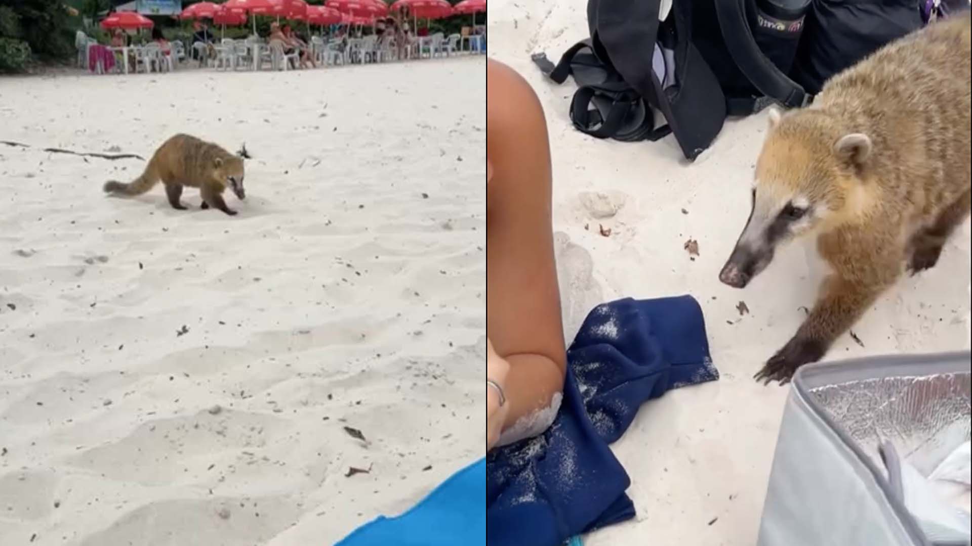 En la grabación, se aprecia cómo los turistas disfrutan del mar cuando, de repente, el animal se acerca con evidente intención de robarles su comida. A pesar de los enérgicos gritos de “¡Salí de acá!” y “¡No, nene!” dirigidos al coati, este no se intimida y se abalanza directamente sobre una bolsa de pan que tenía cerca el grupo, apoderándose rápidamente de una bolsa de sándwiches.