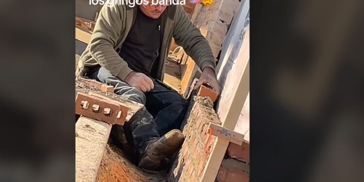 “Ya empezaron a trabajar los gringos banda”, se lee en el video, mientras se muestra a varios hombres colocando ladrillos y cemento de manera lenta y con cierta torpeza al levantar una barda. La escena rápidamente se volvió viral, provocando reacciones entre los internautas.