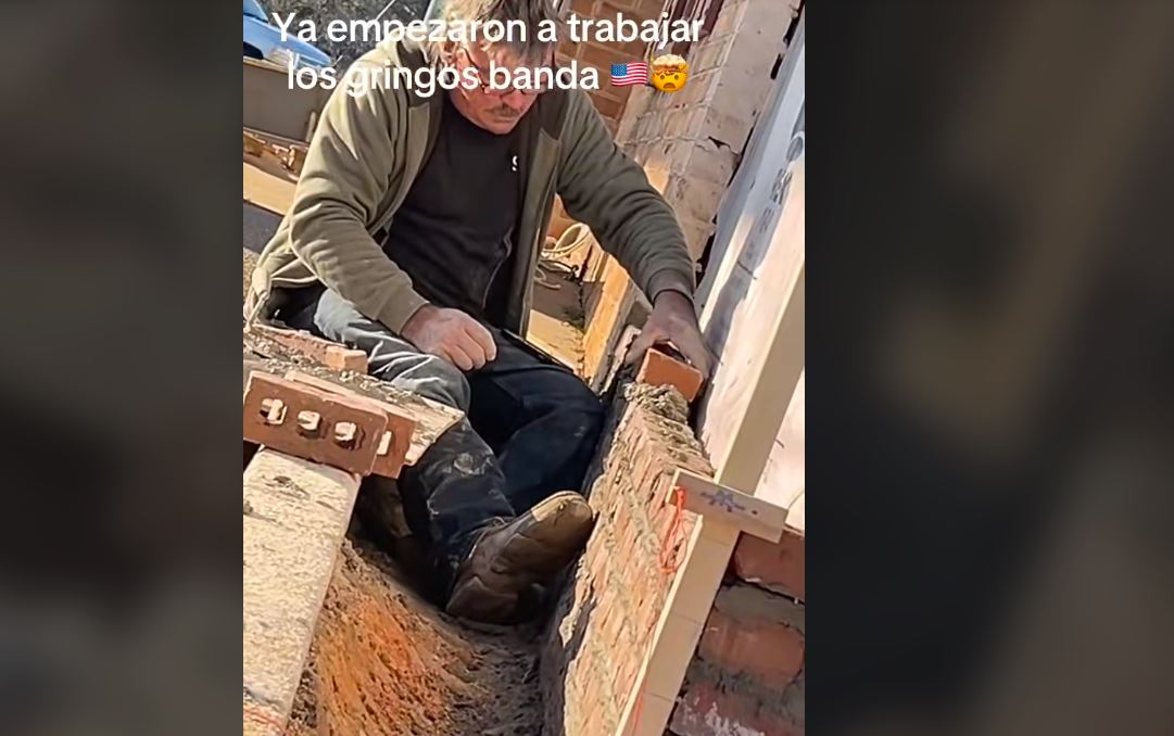 “Ya empezaron a trabajar los gringos banda”, se lee en el video, mientras se muestra a varios hombres colocando ladrillos y cemento de manera lenta y con cierta torpeza al levantar una barda. La escena rápidamente se volvió viral, provocando reacciones entre los internautas.
