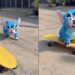 Bulldog inglés disfrazado de Stitch causa furor en TikTok por su habilidad con el skate