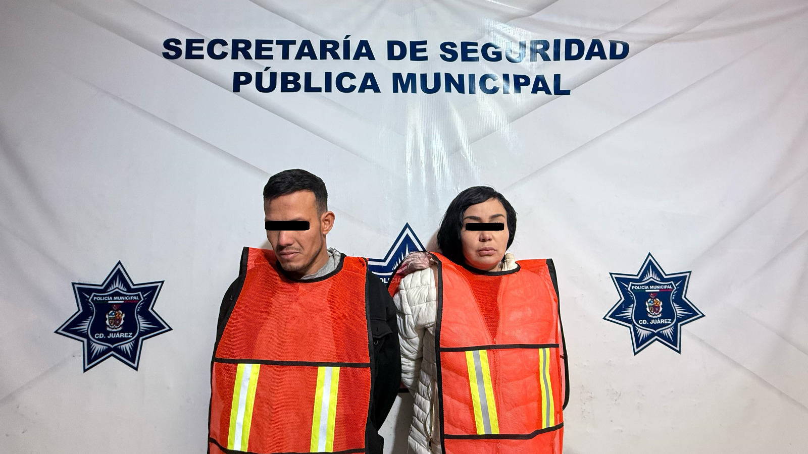 Ciudad Juárez.-Elementos de la Secretaría de Seguridad Pública Municipal lograron la detención de Eduardo Enrique R. L. (34 años) y Bianca Lizeth N. F. (31 años) en la colonia Córdova Américas, tras encontrarles una bolsa con aproximadamente 500 gramos de cristal en su vehículo.