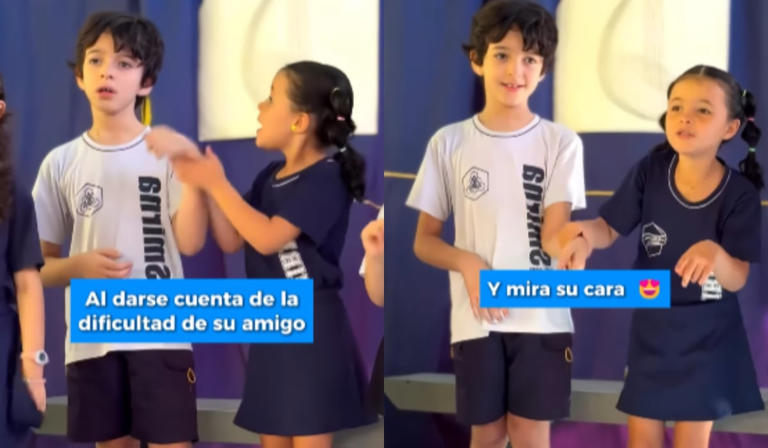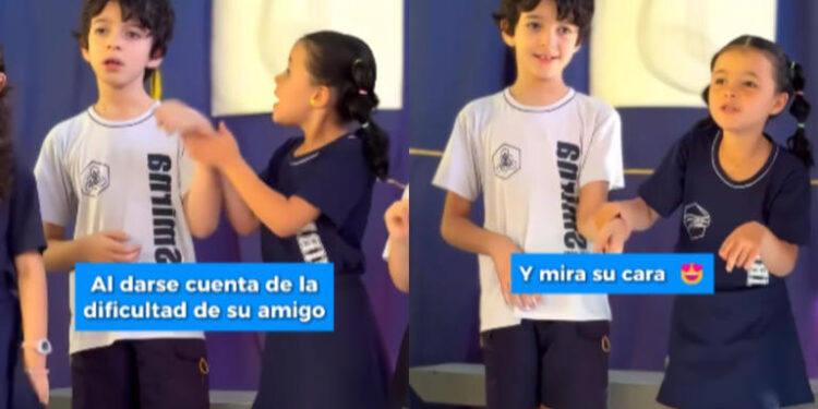 Niña ayuda a su compañero con autismo a recordar los pasos en pleno baile y conmueve en redes