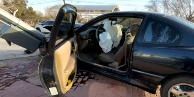 Ciudad Juárez, Chih. – Un conductor perdió el control de su vehículo y se subió al camellón central de la calle Laguna de Tamiagua, donde derribó un árbol y un poste de alumbrado público.
