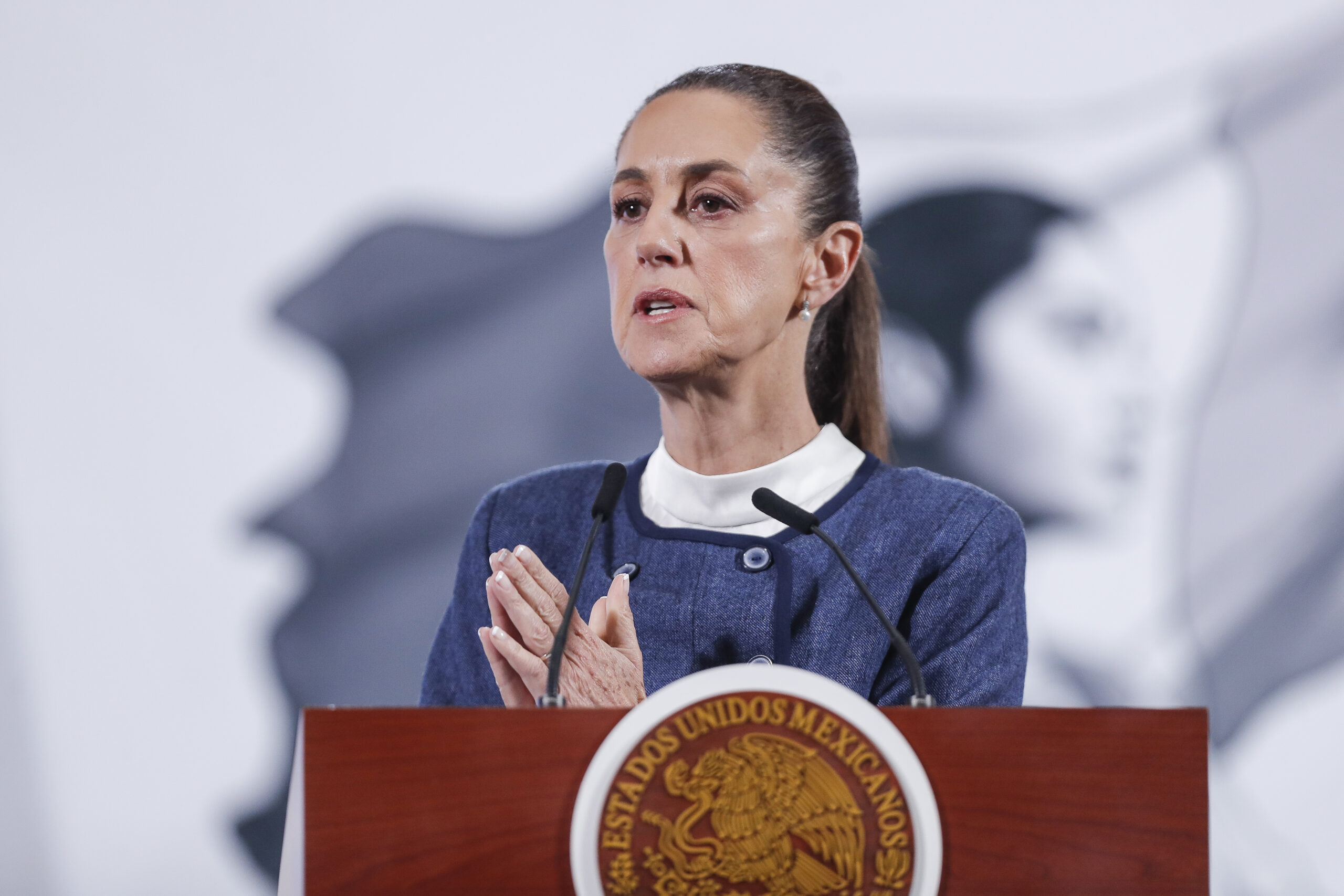 MEX4275. CIUDAD DE MÉXICO (MÉXICO), 26/02/2025.- La presidenta de México, Claudia Sheinbaum, participa este miércoles en una rueda de prensa en Palacio Nacional en la Ciudad de México (México). EFE/ Isaac Esquivel