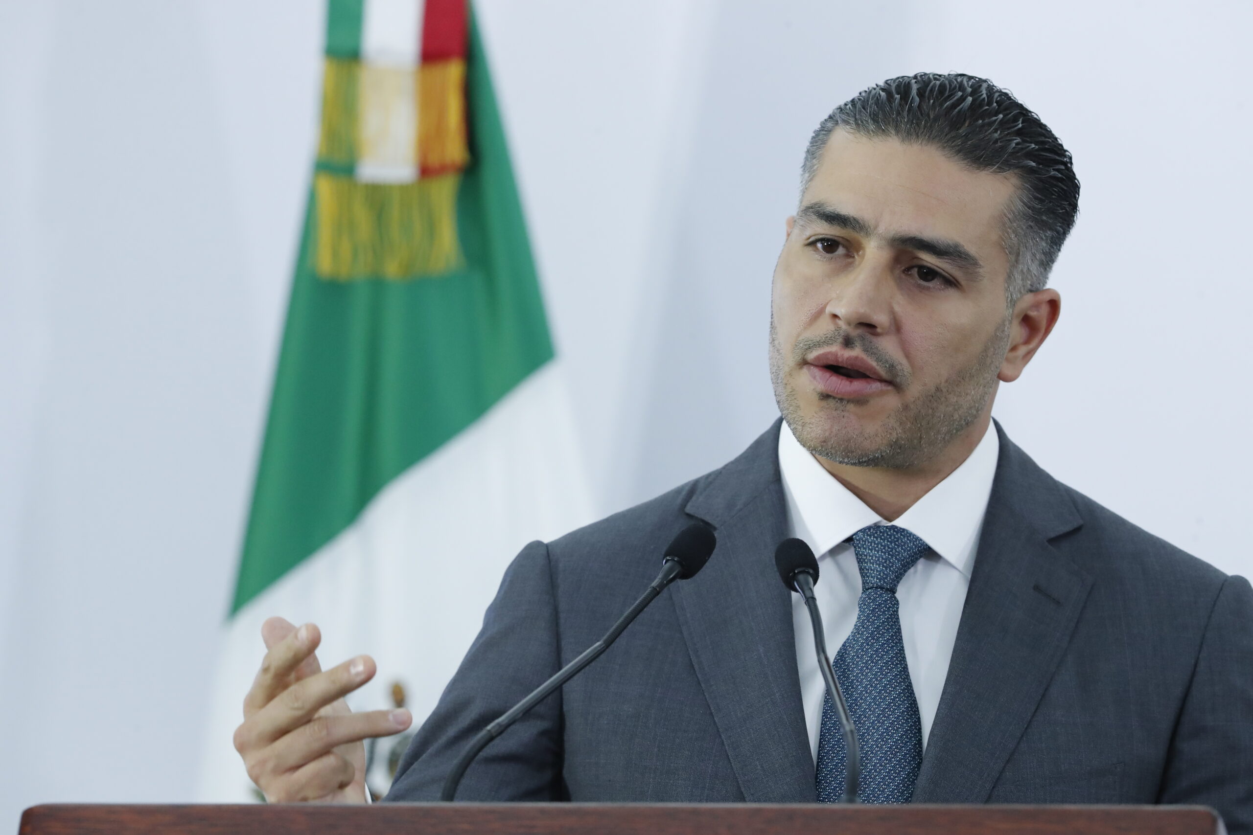 Ciudad de México.- El secretario de Seguridad y Protección Ciudadana, Ómar García Harfuch, habla durante una rueda de prensa este jueves, en Ciudad de México (México). El fiscal General de México, Alejandro Gertz Manero, aseguró que los 29 narcotraficantes trasladados el jueves a Estados Unidos fueron entregados y no extraditados, pues la operación se hizo de acuerdo a la Ley de Seguridad Nacional que tiene más de 20 años tras una solicitud del gobierno de los Estados Unidos.