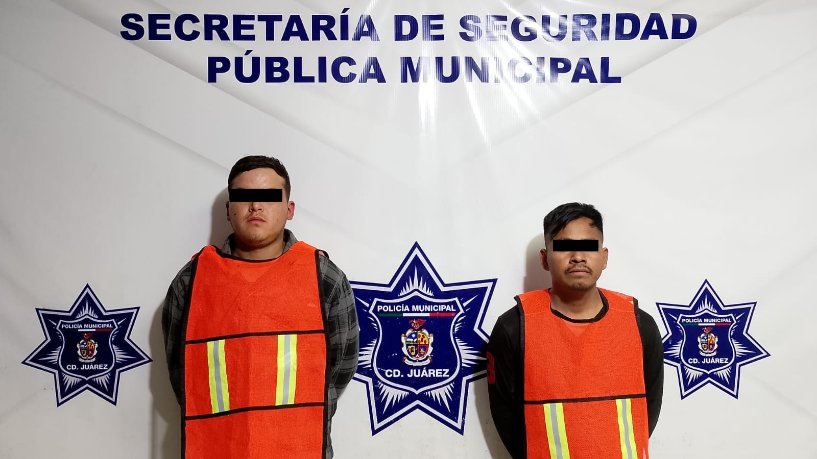 Elementos de la Secretaría de Seguridad Pública Municipal arrestaron a Alfredo H. A. y Julio R. M., por su presunta responsabilidad en la comisión de delitos contra la salud, mismos que resultaron ser objetivos prioritarios ya que presuntamente han participado en varios robos con violencia a casa comercial.